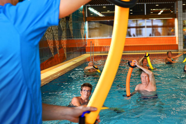 Mit einer Wassertiefe von 0,8 bis 1,35 Meter, einer Größe von 8 x 12,5 Metern und perfekt abgestimmter Temperatur ist das Lehrschwimmbecken ideal für Schwimmanfänger sowie für Aquafitness geeignet.